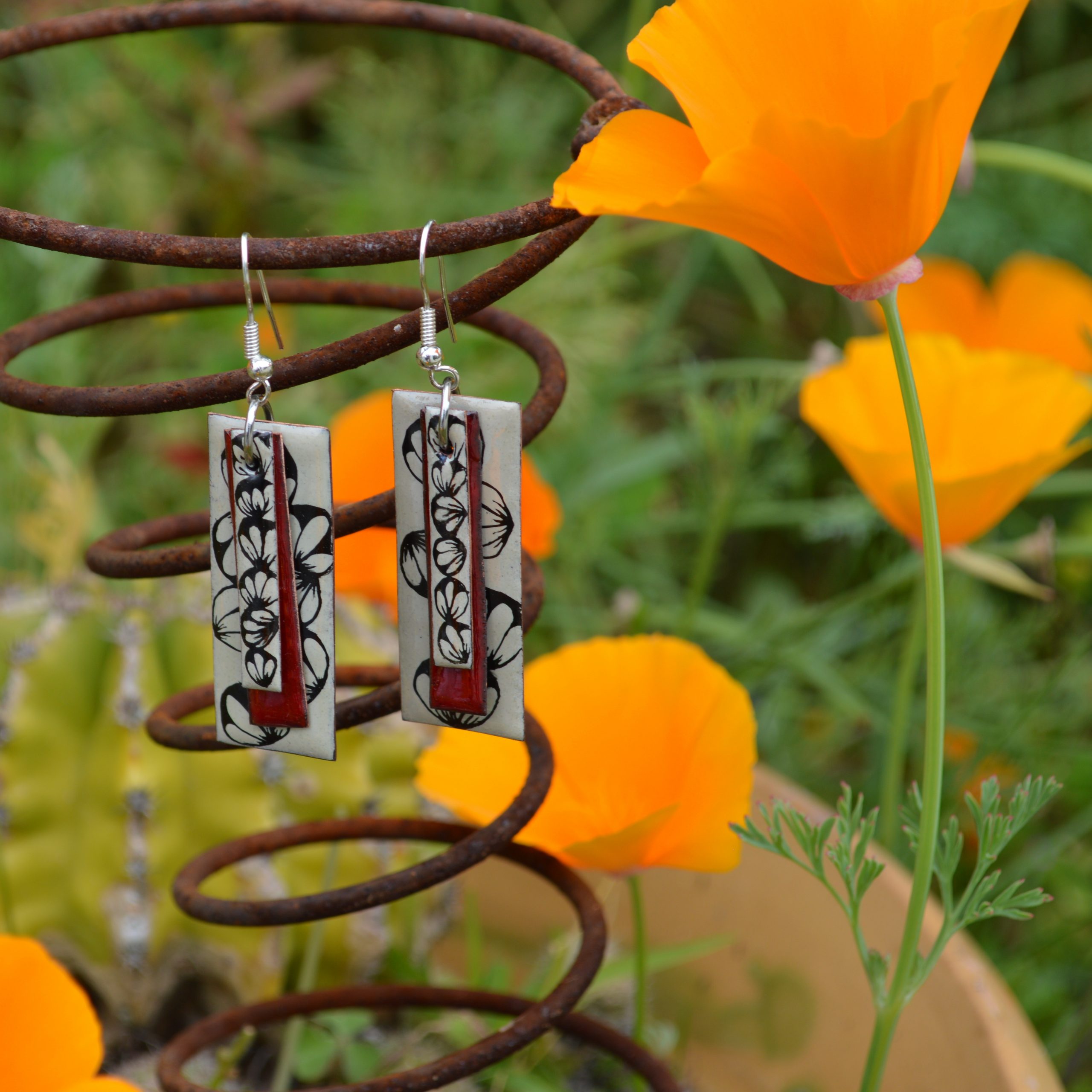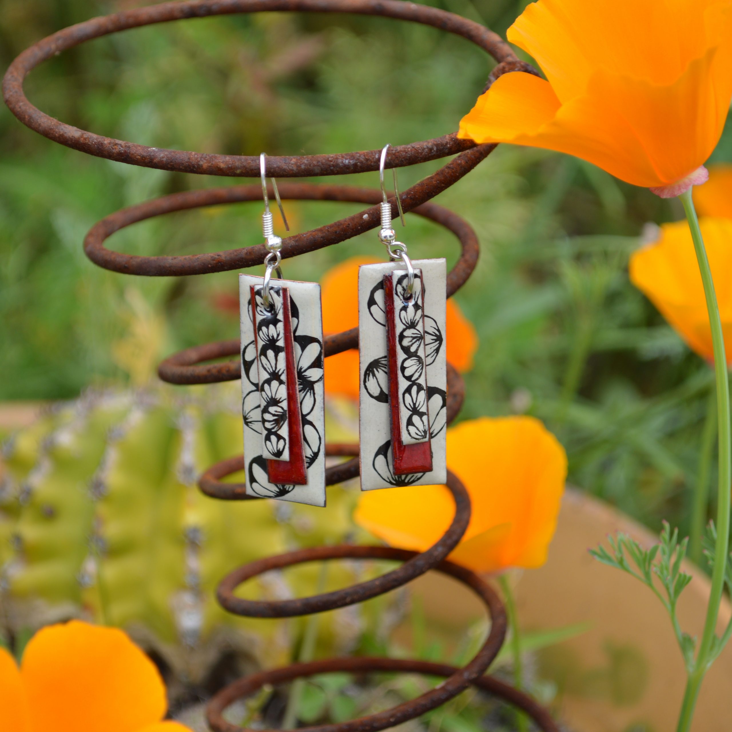 Boucles d’oreilles en émail sur cuivre, attaches en argent.