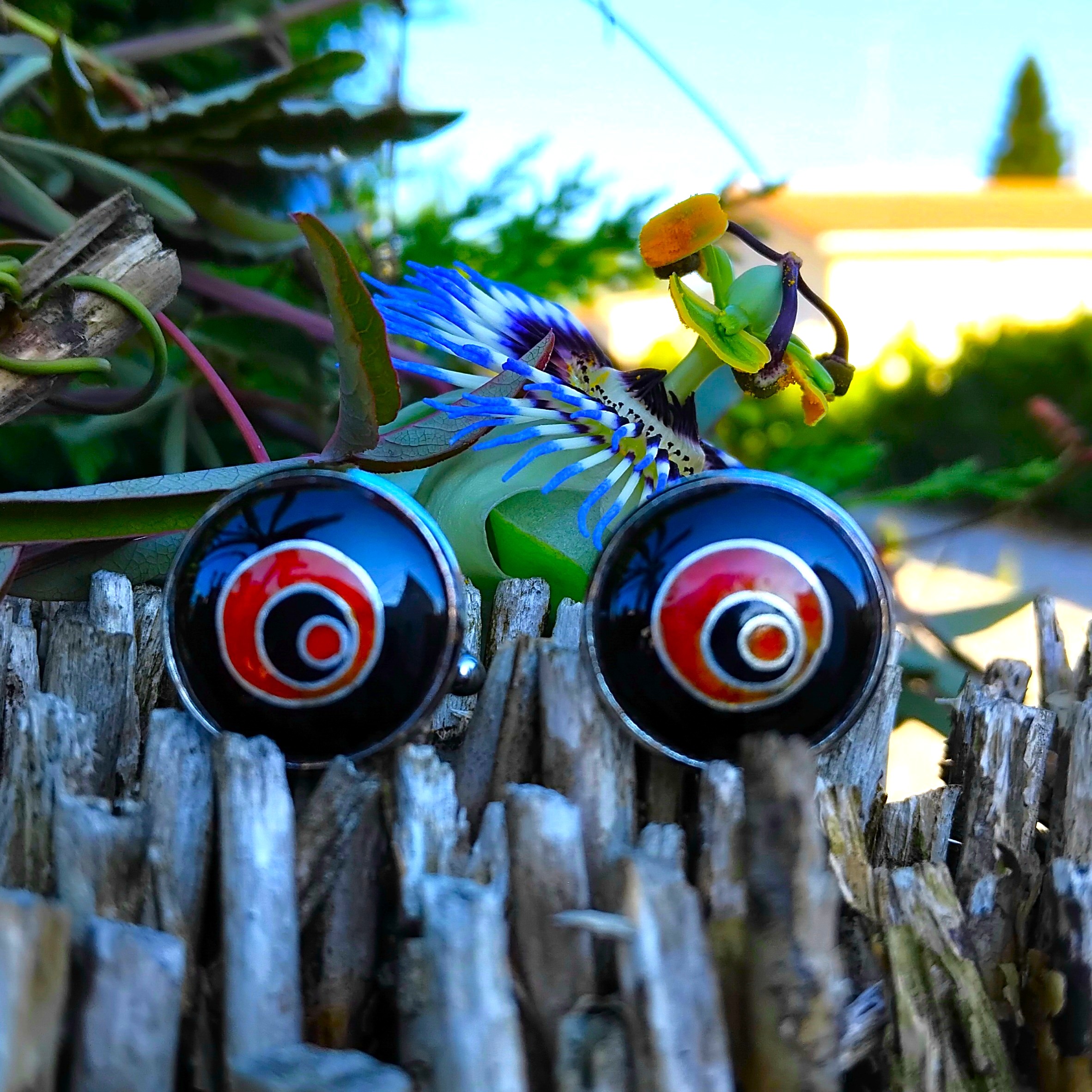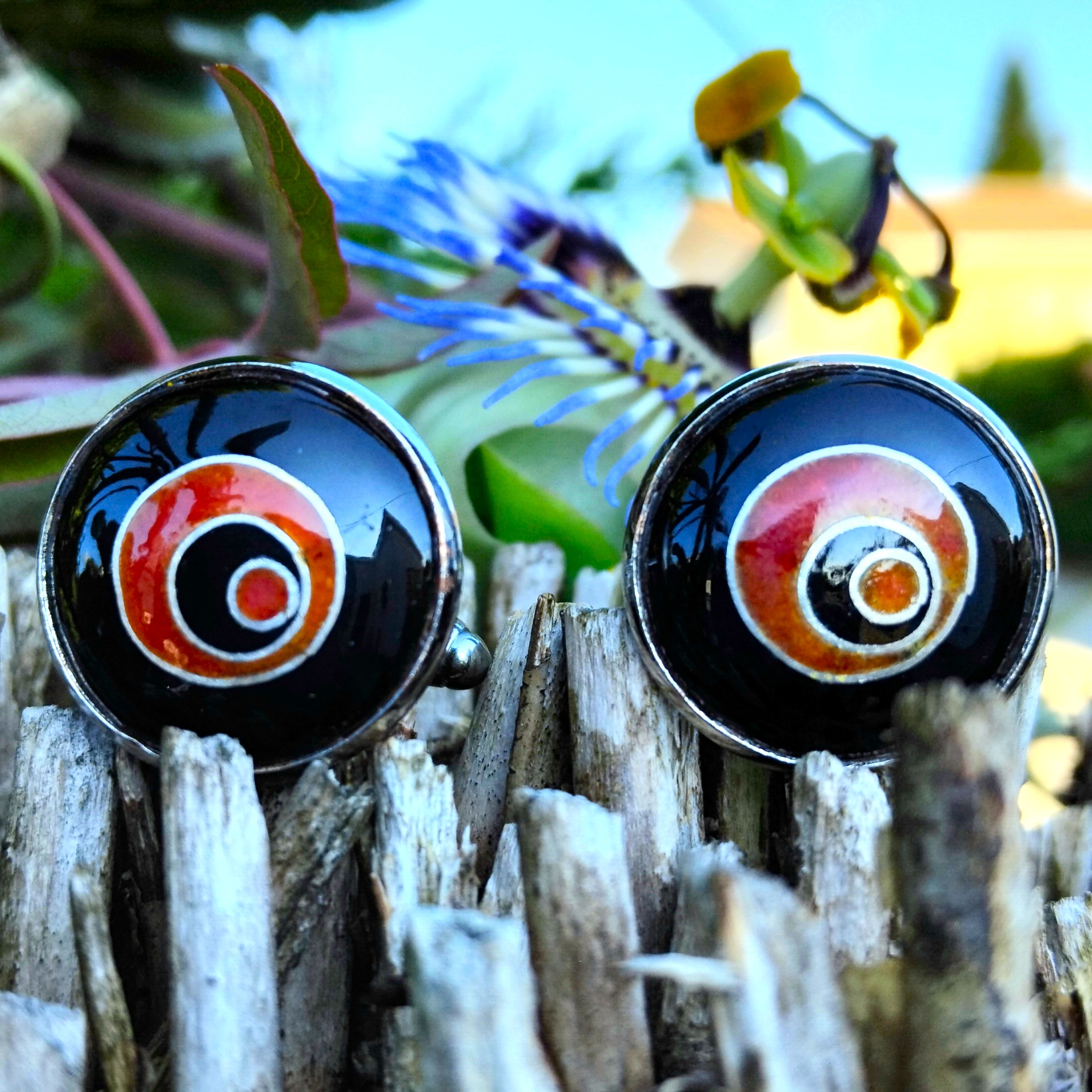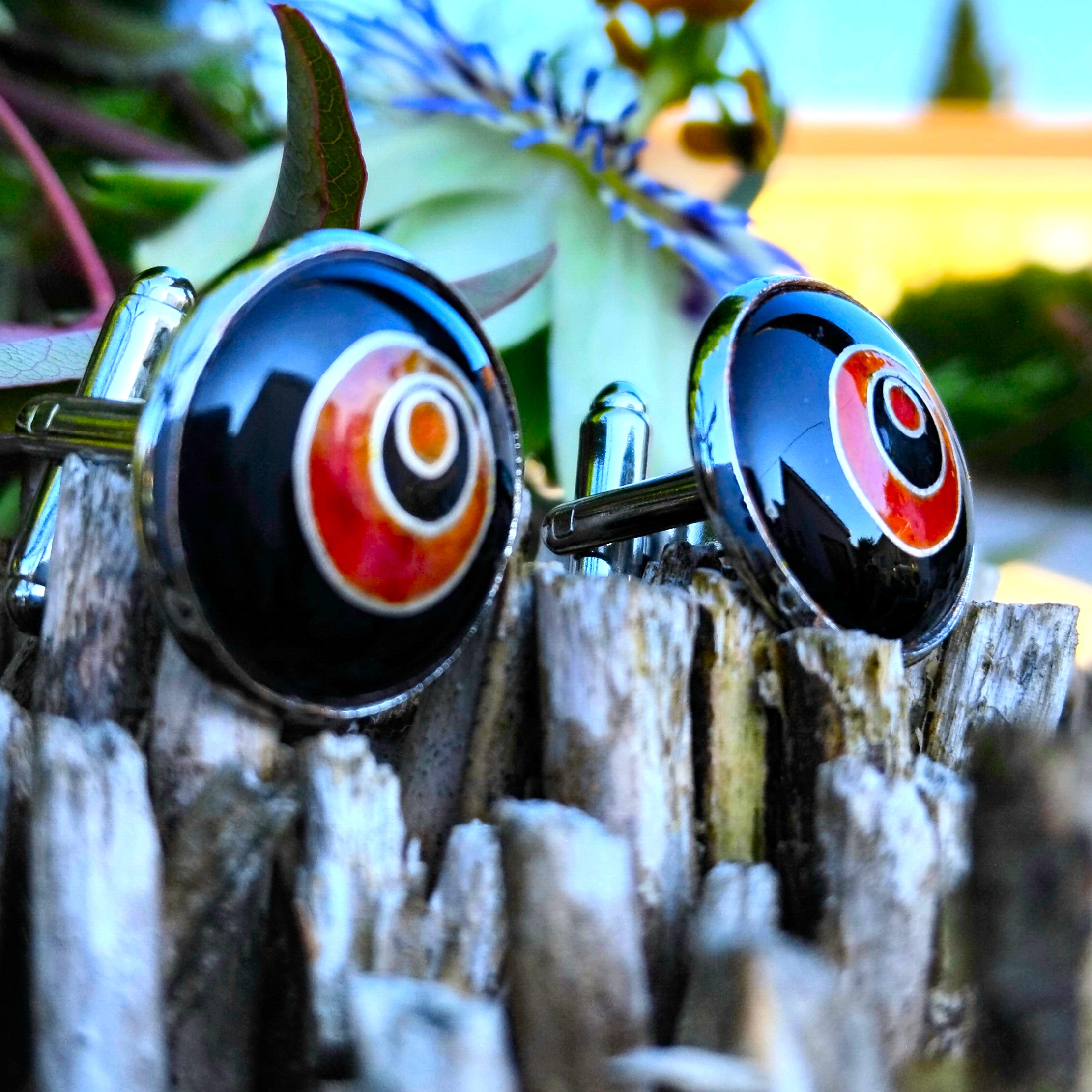 Boutons de manchette noirs et rose en cloisonné fil d’argent, ils personnaliseront vos chemises.