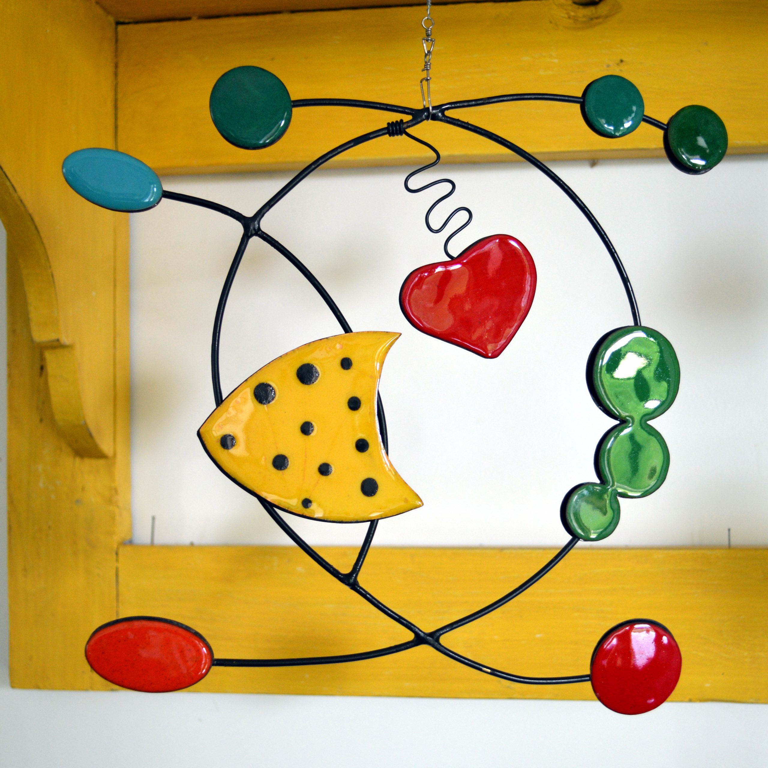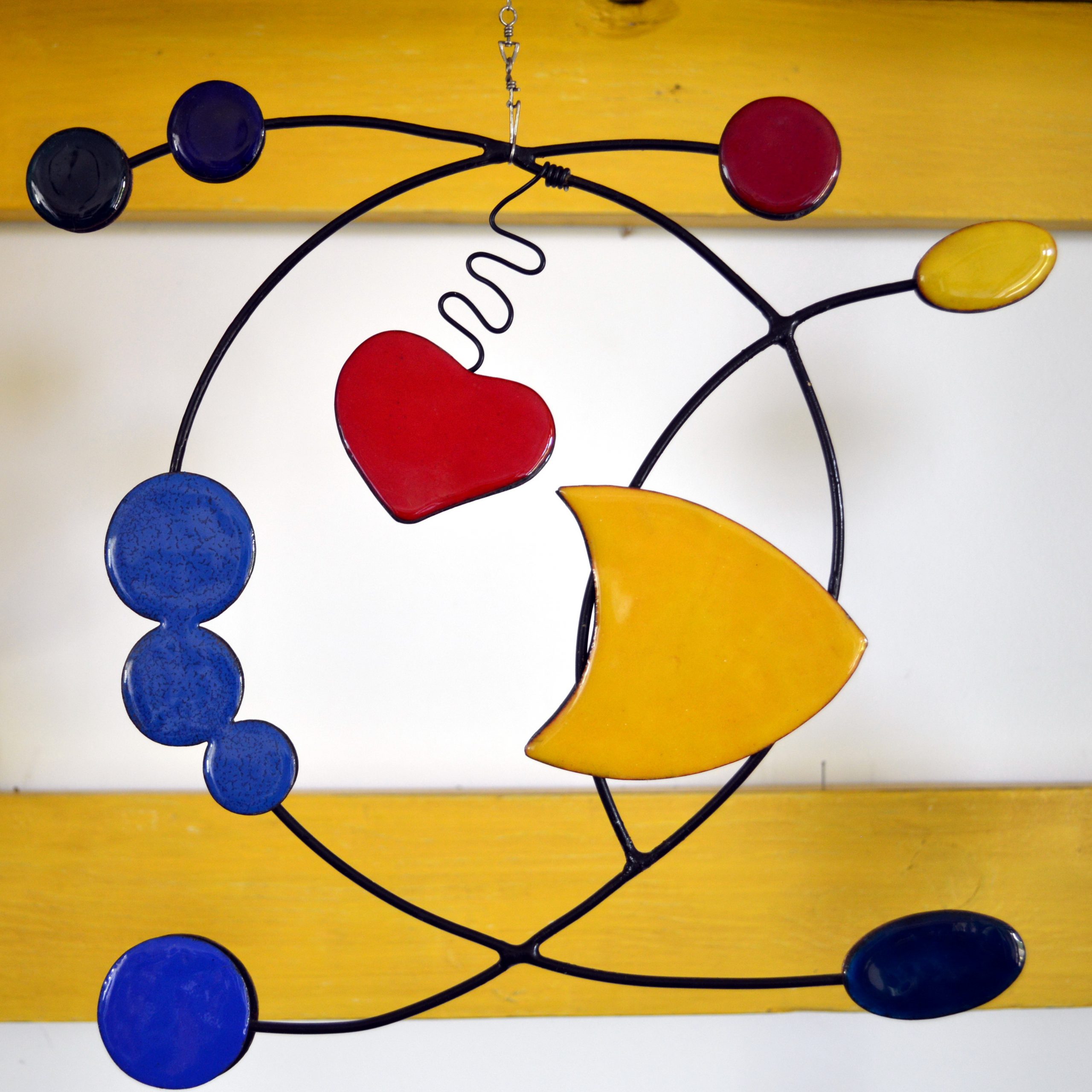 Mobile destiné à être suspendu en intérieur. Ses couleurs primaires intrigueront les plus petits comme les plus grands.