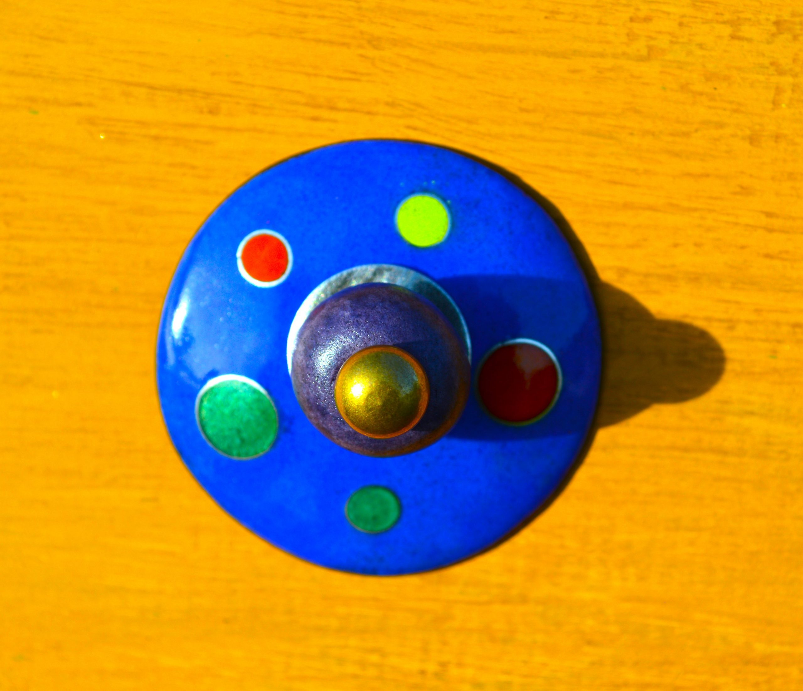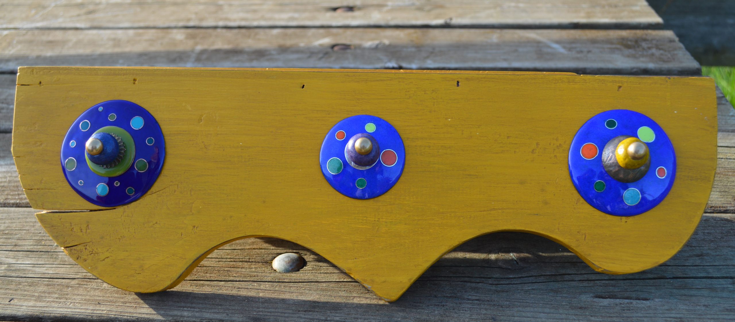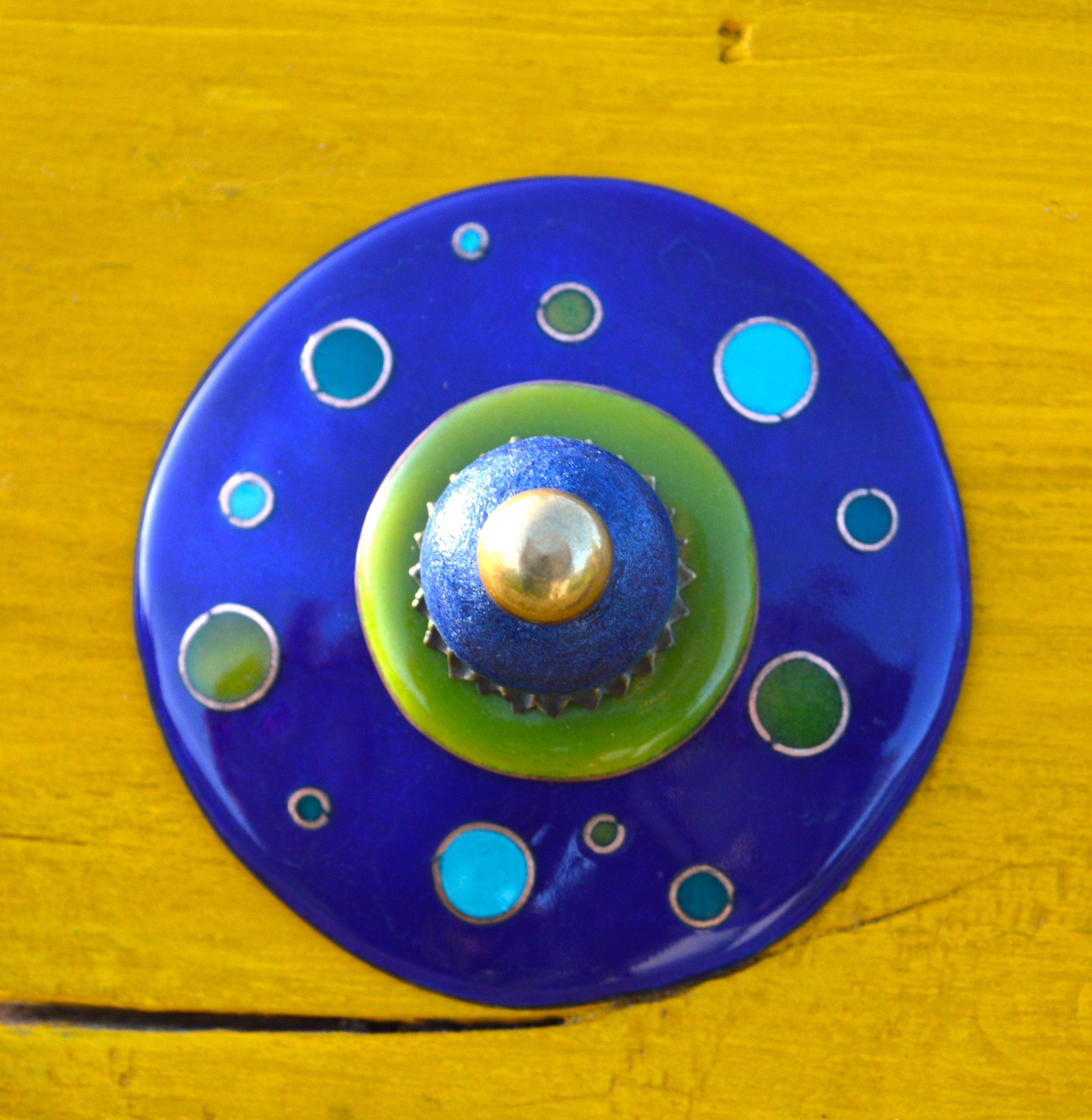 Elles sont composées de disques émaillés, d’une perle en céramique et d’une bille de laiton.